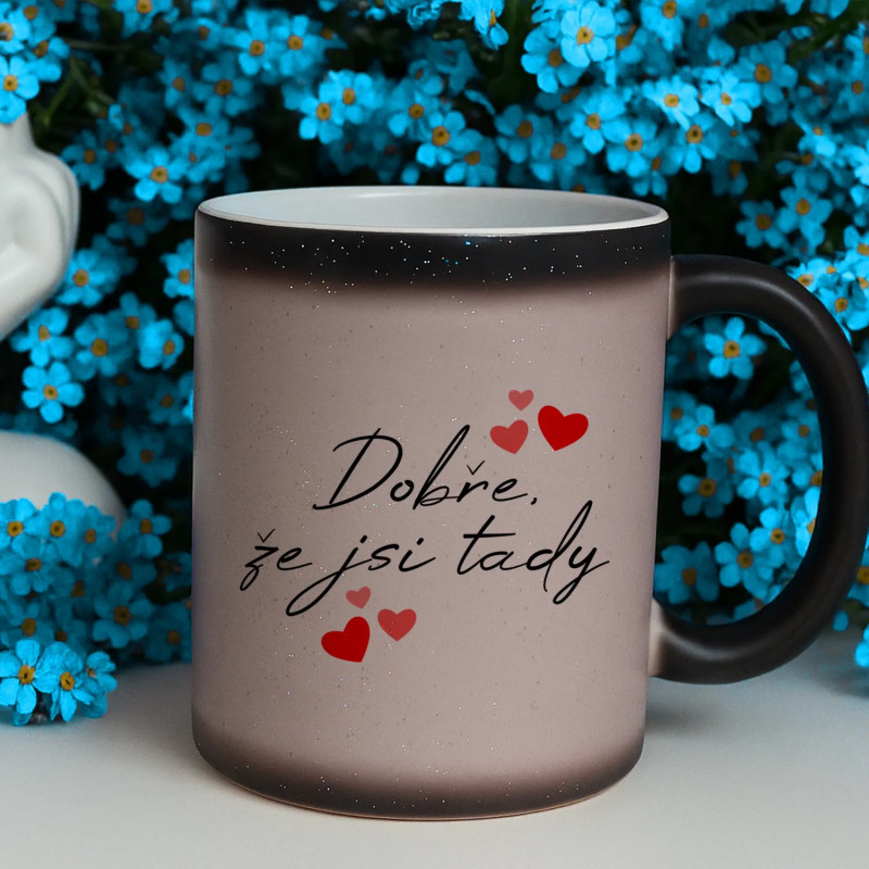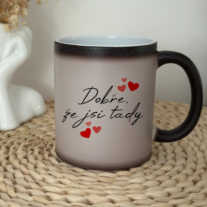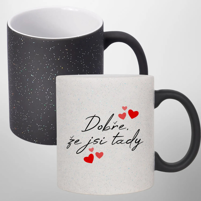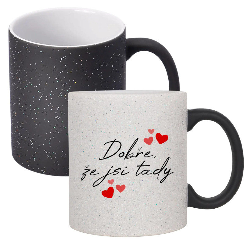 Stylový hrnek o objemu 330 ml, který mění vzhled působením tepla. Po zalití horkým nápojem odhalí skrytý potisk a třpytivý brokát mu dodává výjimečné kouzlo. Ideální jako dárek!