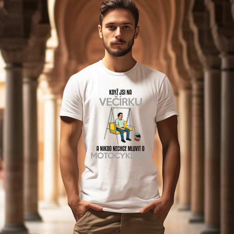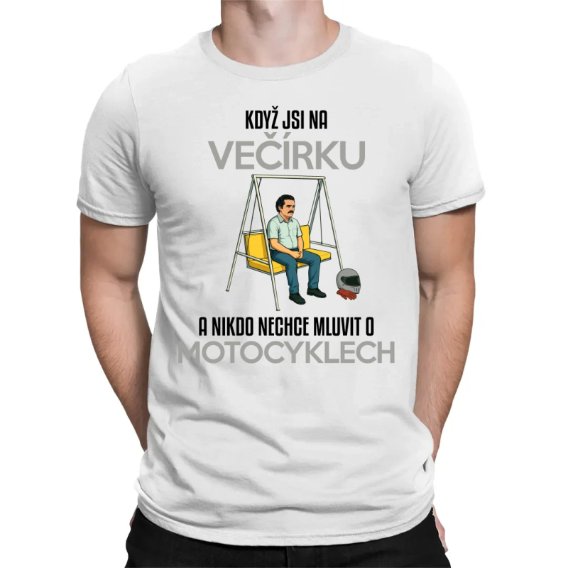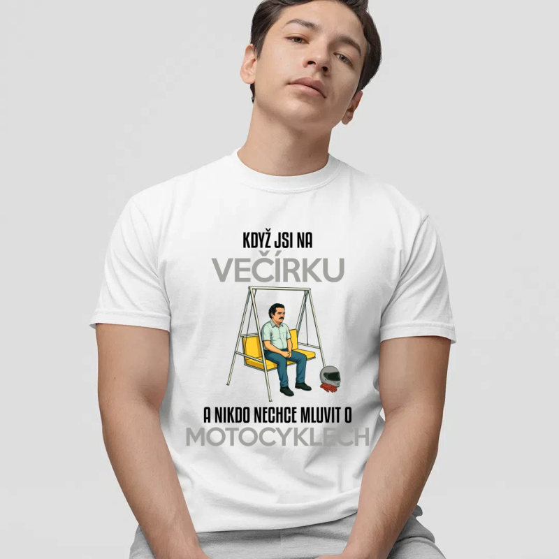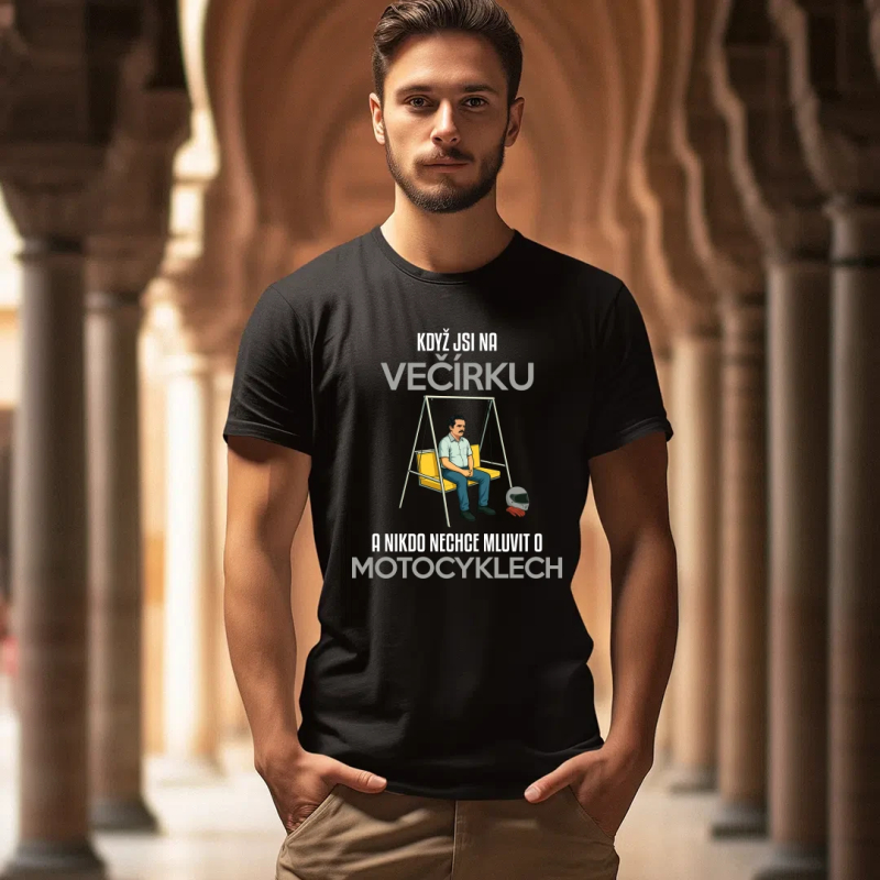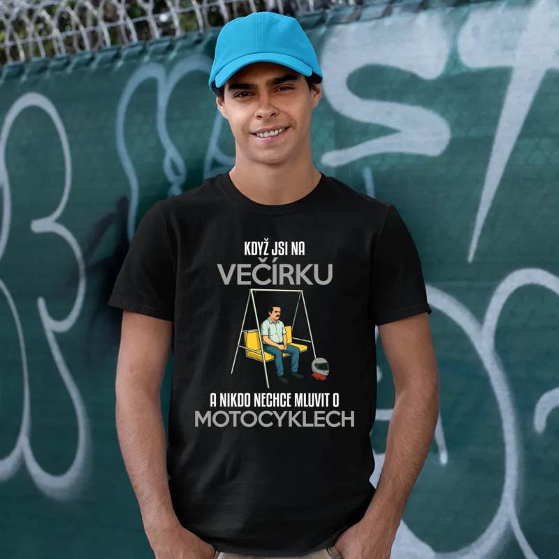 Když jsi na večírku a nikdo nechce mluvit o motocyklech - pánské tričko s potiskem