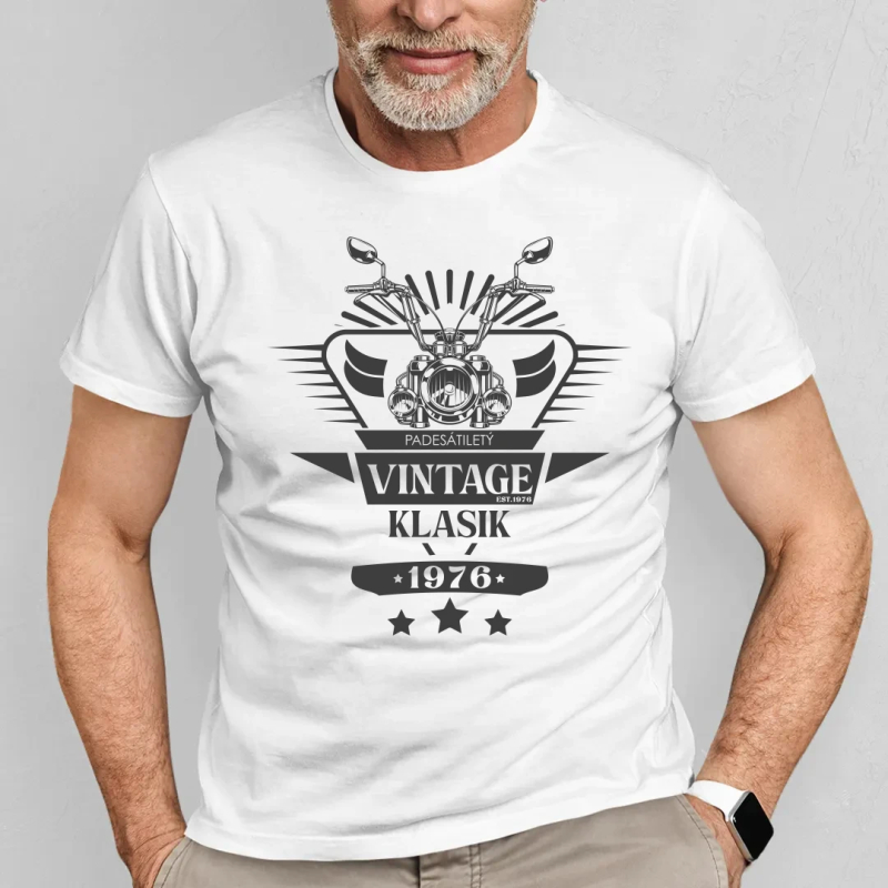 Pánské tričko s potiskem. Ideální pro Vás nebo jako dárek pro blízkou osobu. Vyrobeno z hrubé, vysoce kvalitní bavlny. Rok a jméno uveďte do poznámky k objednávce.